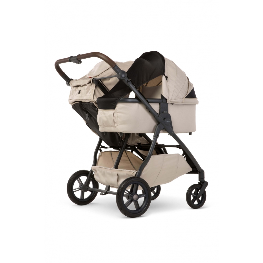 La nouvelle poussette double côte à côte M.Twin x de Mast vous accompagnera au quotidien, dès la naissance de vos bébés.