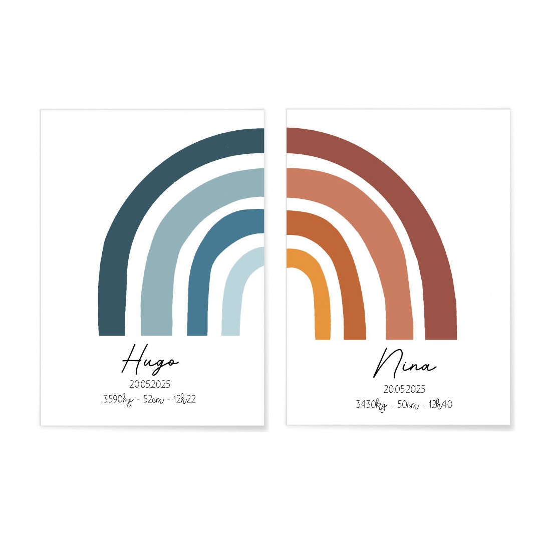 Set de 2 affiches en papier Jumeaux mixte - Arc-en-ciel Terracotta & Bleu