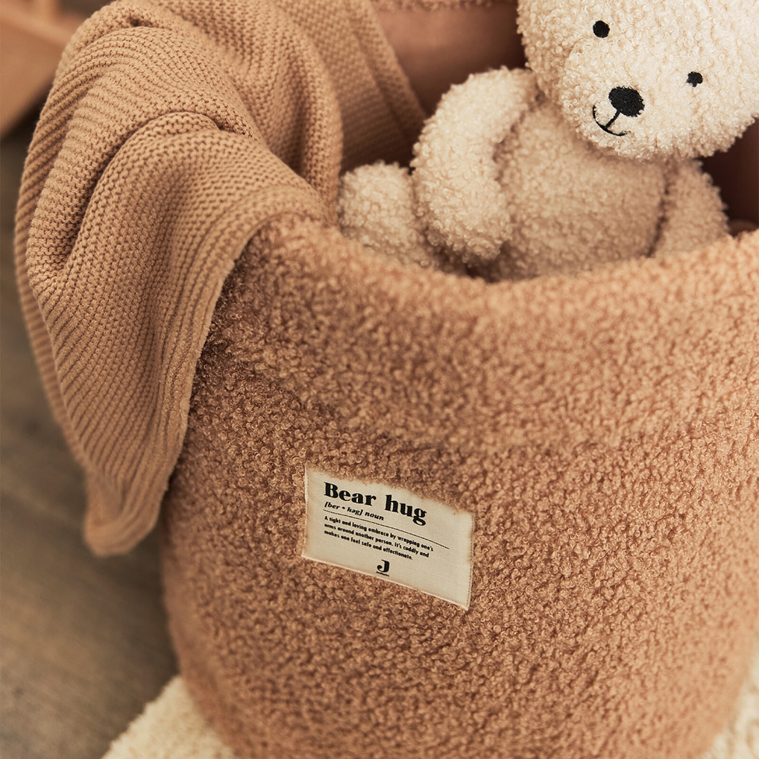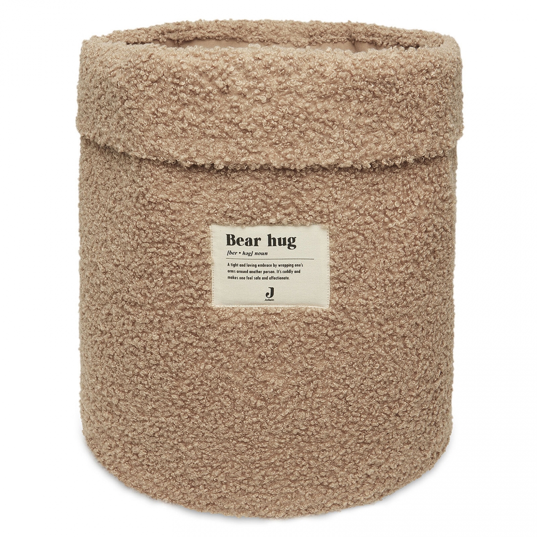 Avec ses dimensions compactes (14 cm de hauteur et 18 cm de diamètre), cette corbeille est idéale à poser sur une commode, une étagère ou une table à langer. Son joli logo « bear-hug » sur le devant ajoute une note chaleureuse et raffinée à la décoration.