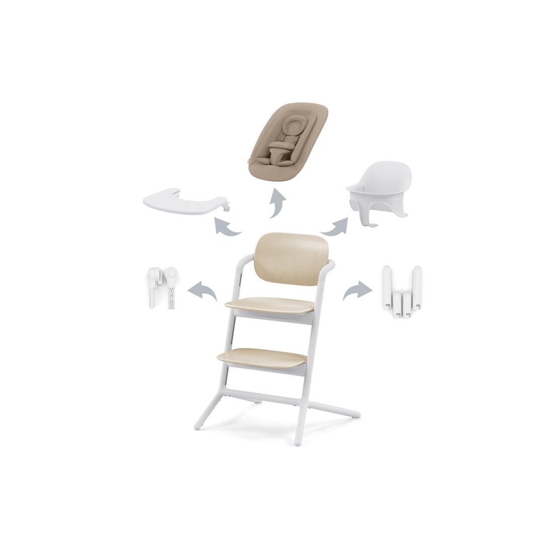 L’ensemble Lemo 4-in-1 comprend tout le nécessaire pour accueillir votre bébé dès ses premiers jours avec le Gold Bouncer Nest, puis pour l’accompagner lorsqu’il apprend à s’asseoir grâce au Baby Set et au plateau inclus.