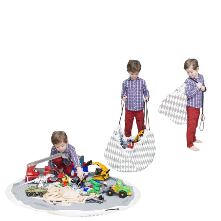 Vos enfants pourront ranger en un clin d'œil tous leurs jouets grâce à ce tapis de jeux ingénieux qui se transforme en sac de rangement.