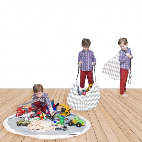 Grâce à ses deux cordes qui se resserrent, vous pouvez transformer le tapis de jeux en un solide sac. Vous pourrez ainsi transporter facilement les jouets favoris de vos enfants partout où vous le souhaitez. Fabriqué à partir d’un tissu résistant et lavable en machine, cet accessoire accompagnera vos enfants très longtemps. Ils pourront emporter leur sac chez la nourrice, chez leurs grands-parents ou lors de tous leurs déplacements.