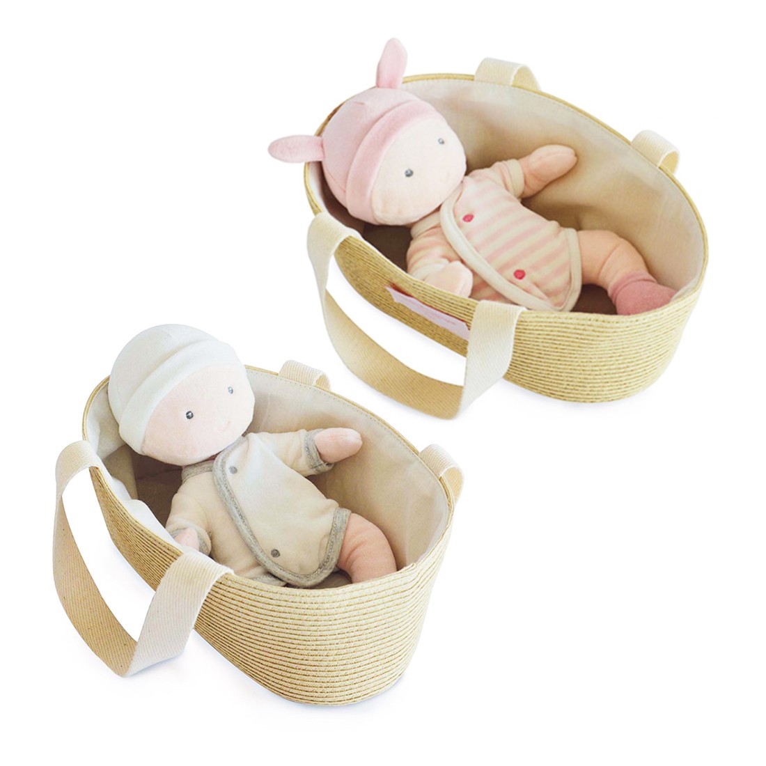 Deux poupons doux et souples, parfaits pour câlins et jeux de rôle