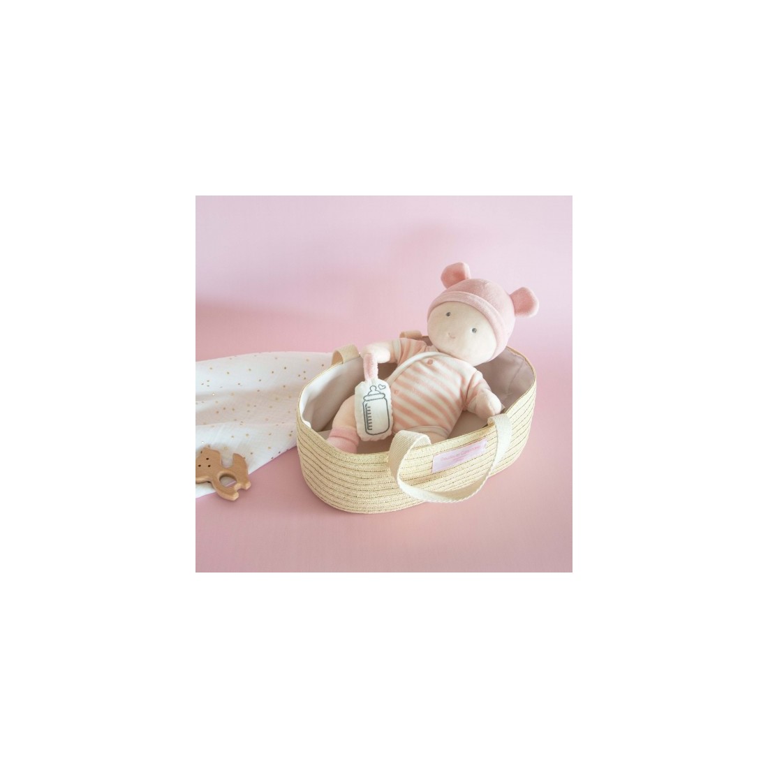 Ce pack de deux adorables poupons avec couffin de Doudou et Compagnie est un compagnon de jeu tendre et souple pour les tout-petits. Chaque poupon est fourni avec son couffin, son petit biberon et un body amovible, offrant aux enfants une expérience de jeu réaliste et réconfortante avec deux compagnons à la fois.
