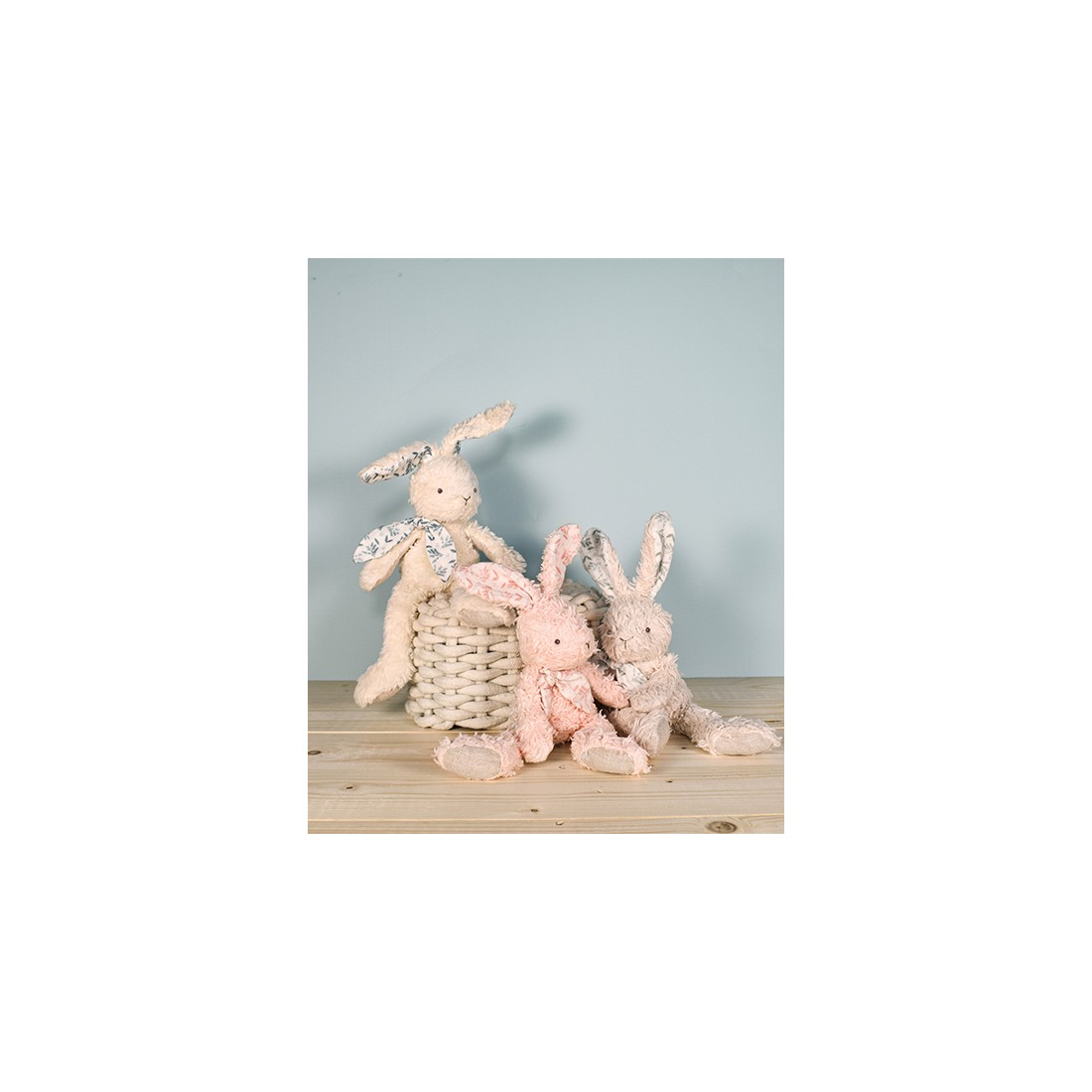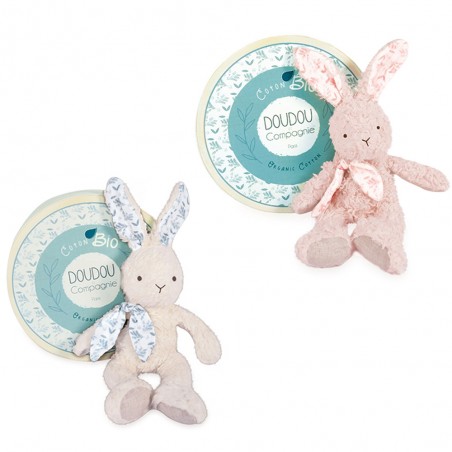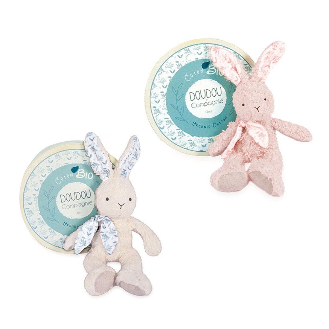 Pack Jumeaux 2 Lapins peluche beige et rose en coton Bio 25 cm - Doudou et Compagnie