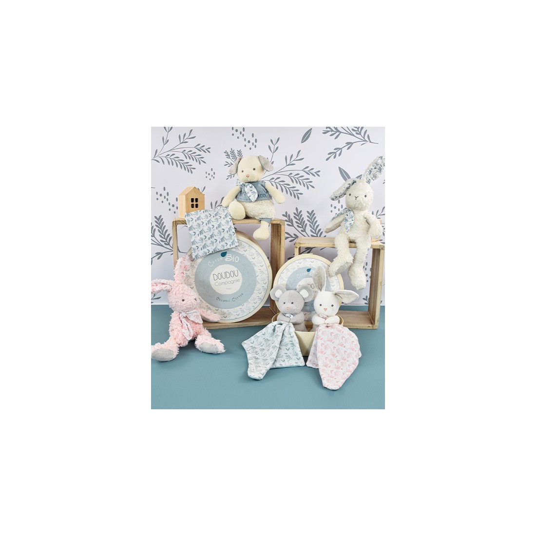 Offrez à vos jumeaux ce set de deux lapins en peluche 25 cm de la Collection Botanic Doudou et Compagnie, confectionnés en 100 % coton bio. Doux, sensoriels et respectueux de la planète, ces doudous pantins sont des compagnons idéaux pour les tout-petits dès la naissance.