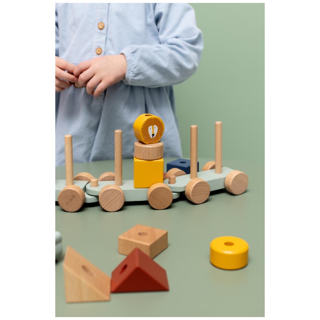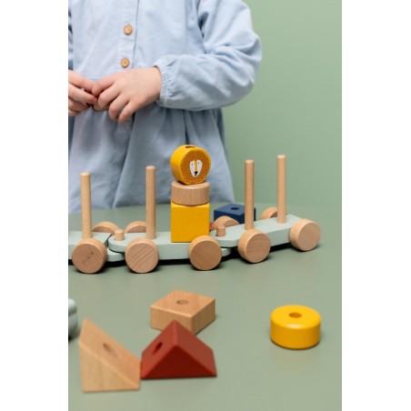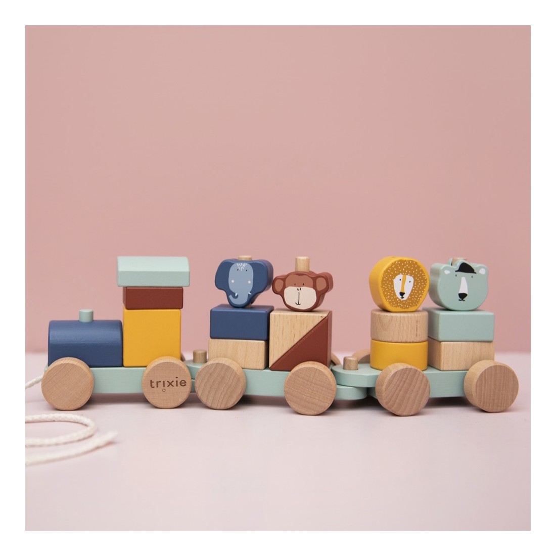 Train à blocs en bois - Trixie Baby - Jouet éducatif pour bébé