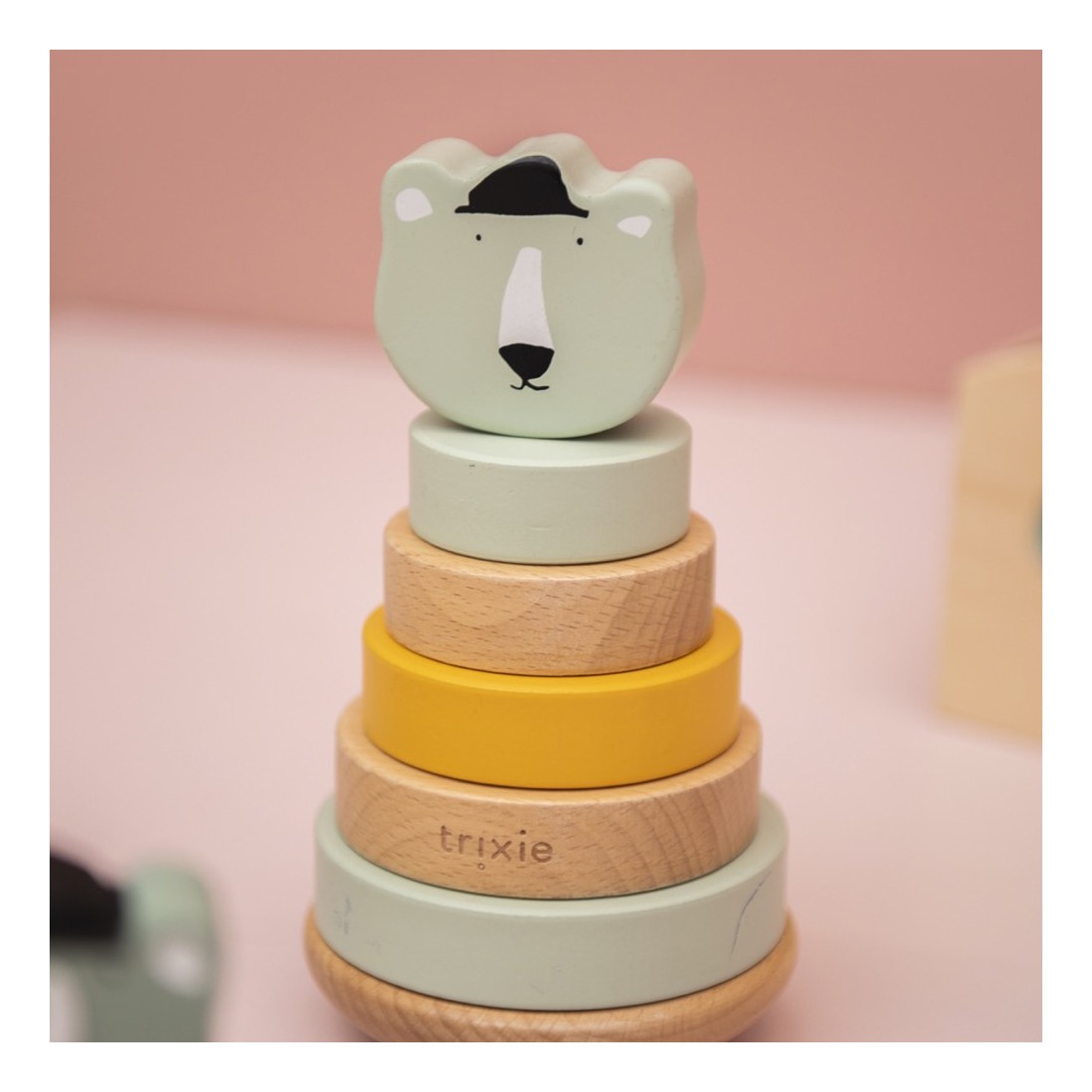 Découvrez la Tour à empiler en bois de la marque Trixie Baby, un cadeau unique et original qui surprendra les heureux parents du nouveau-né.