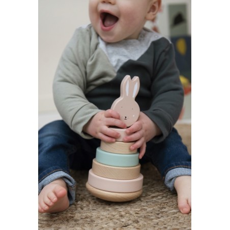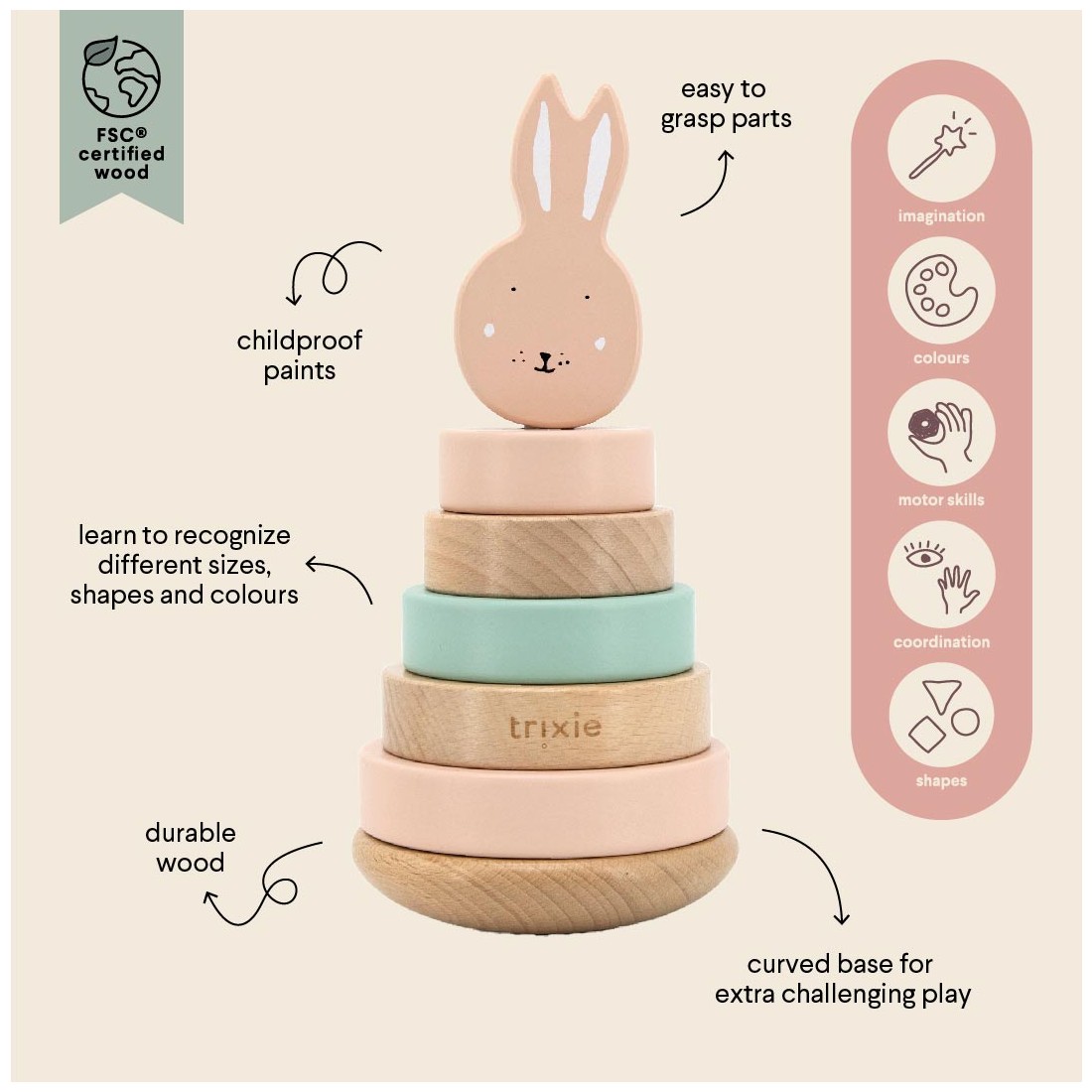 Découvrez la Tour à empiler en bois de la marque Trixie Baby, un cadeau unique et original qui surprendra les heureux parents du nouveau-né.