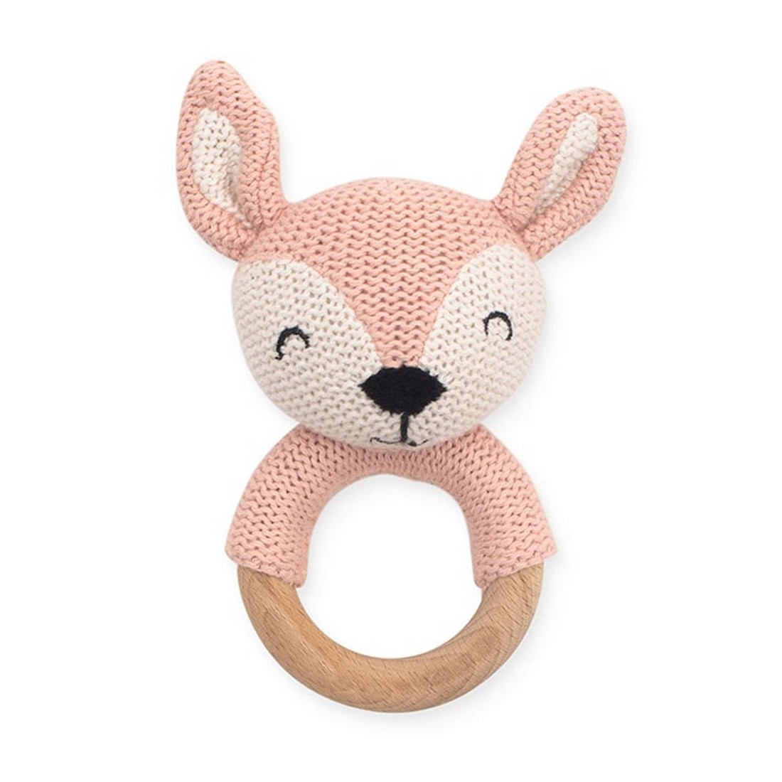 Hochet anneau de dentition biche en tricot - Rose pâle - Jollein