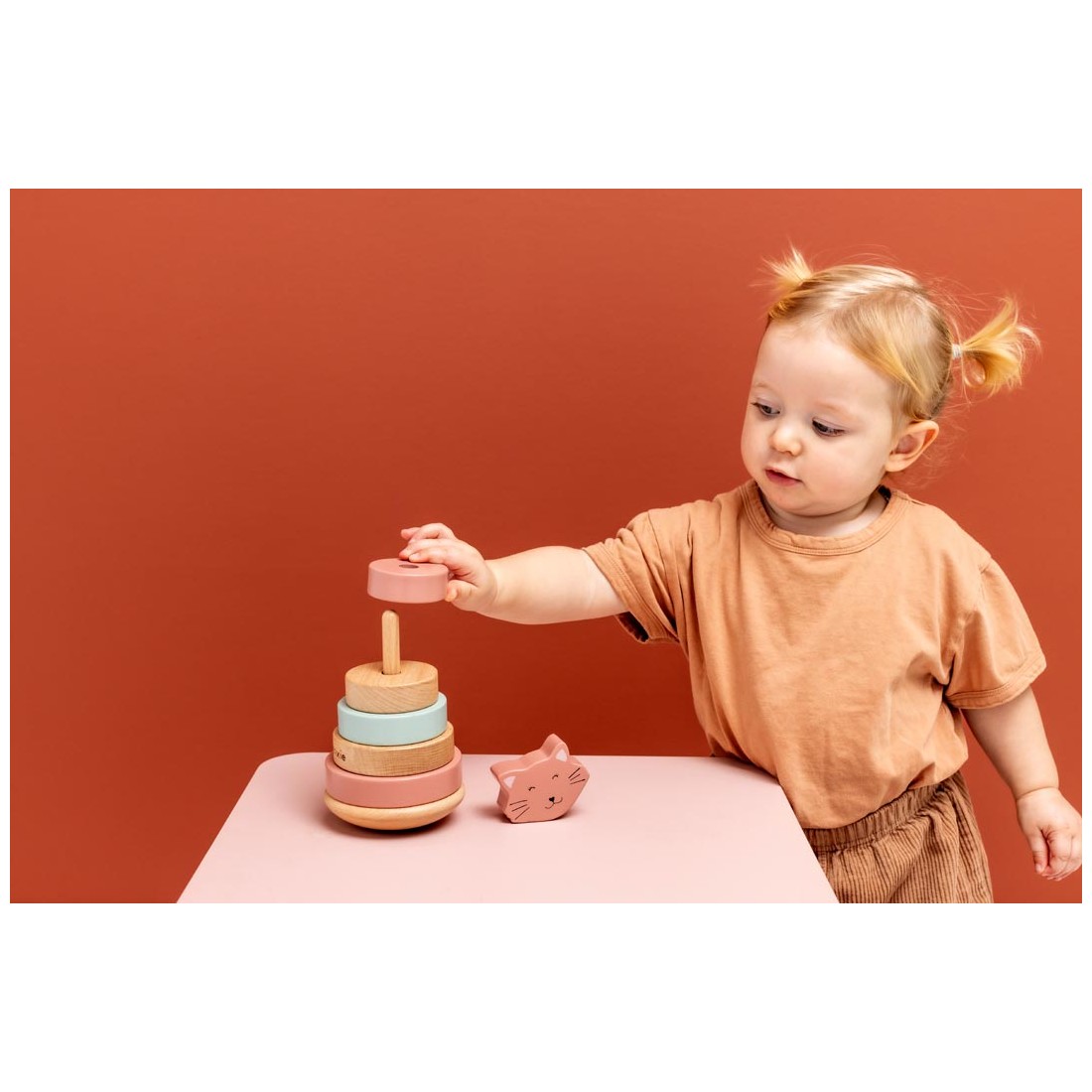Découvrez la Tour à empiler en bois de la marque Trixie Baby, un cadeau unique et original qui surprendra les heureux parents du nouveau-né.