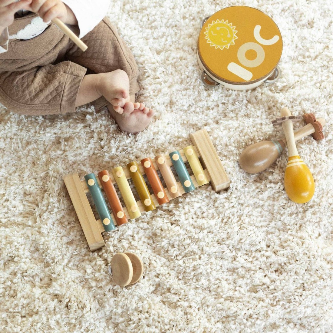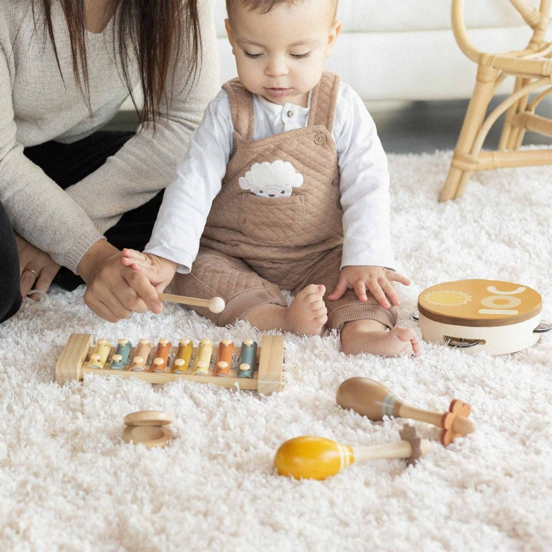 Le coffret musical en bois de Trois Kilos Sept est le cadeau idéal pour initier deux tout-petits à la musique dès 18 mois. Conçu pour être partagé, ce coffret complet inclut 4 instruments, afin que chacun puisse découvrir les sons et les rythmes à son propre rythme.