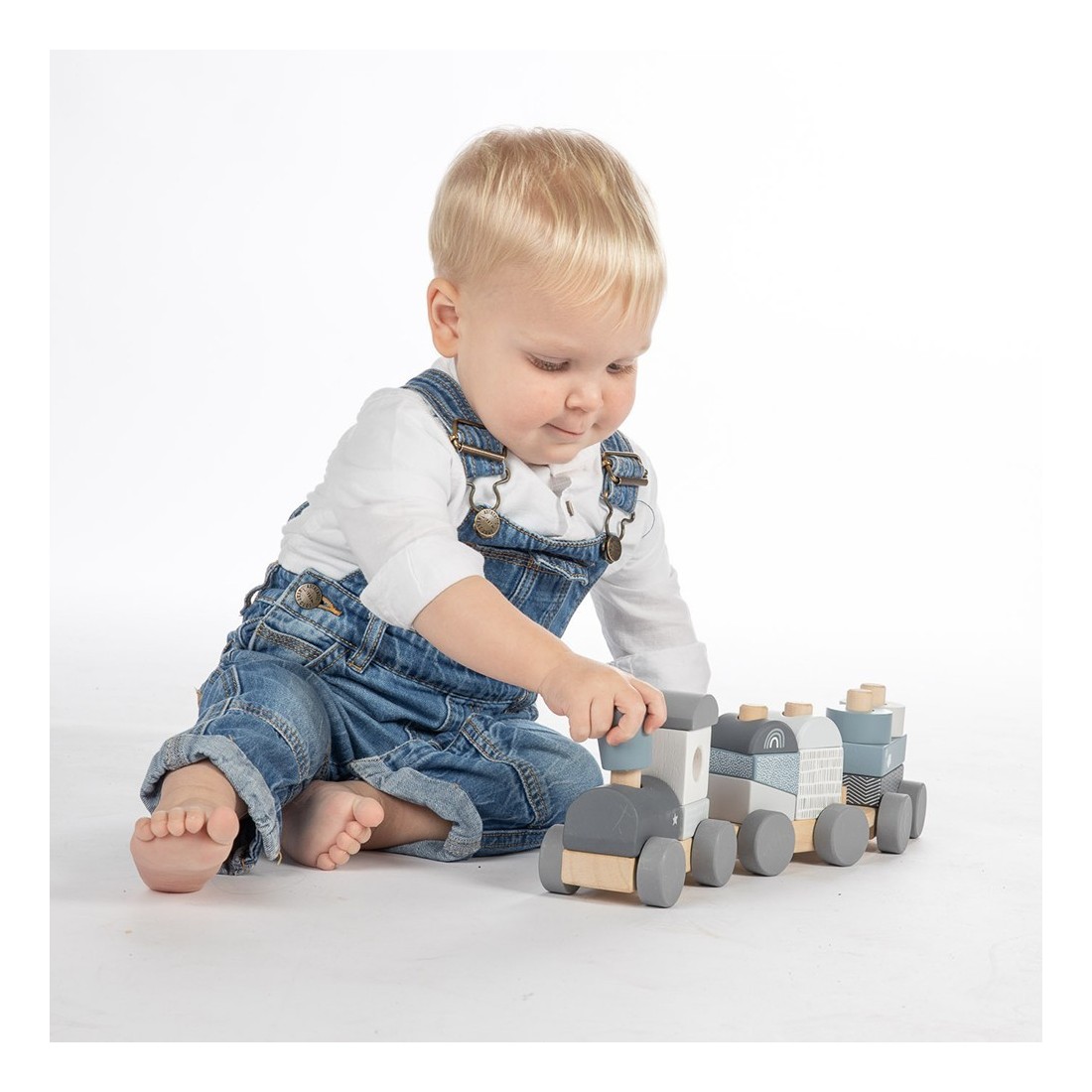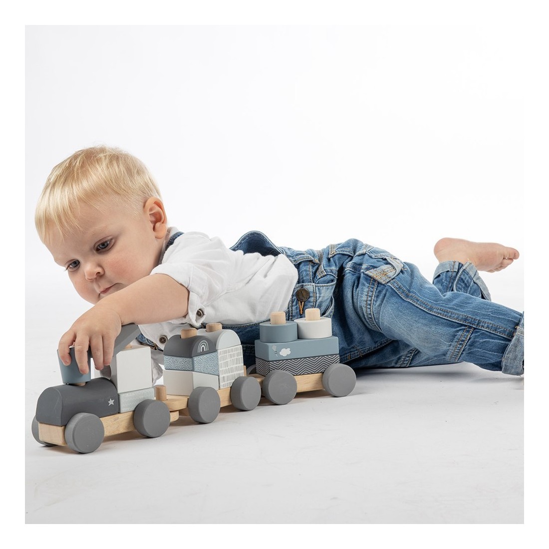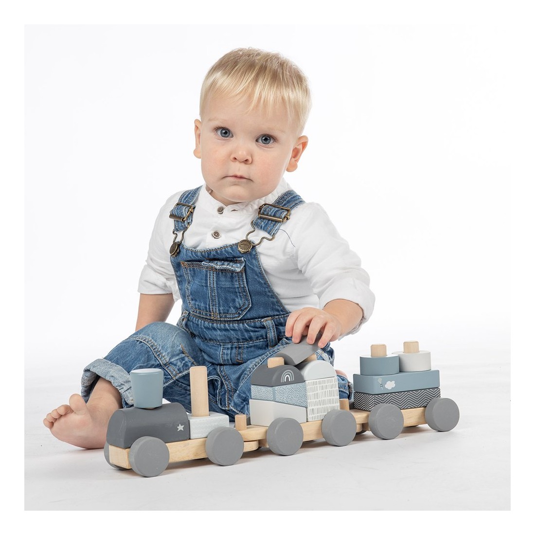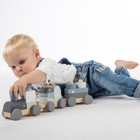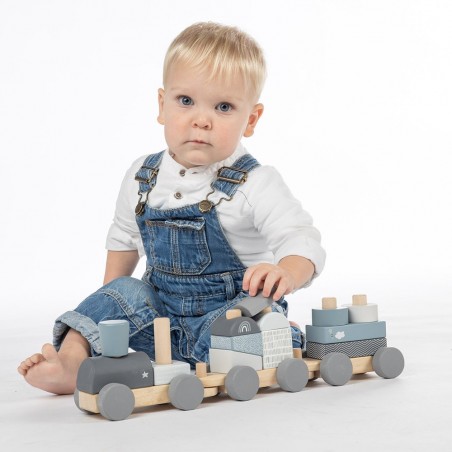 Train à blocs en bois bleu - Label Label