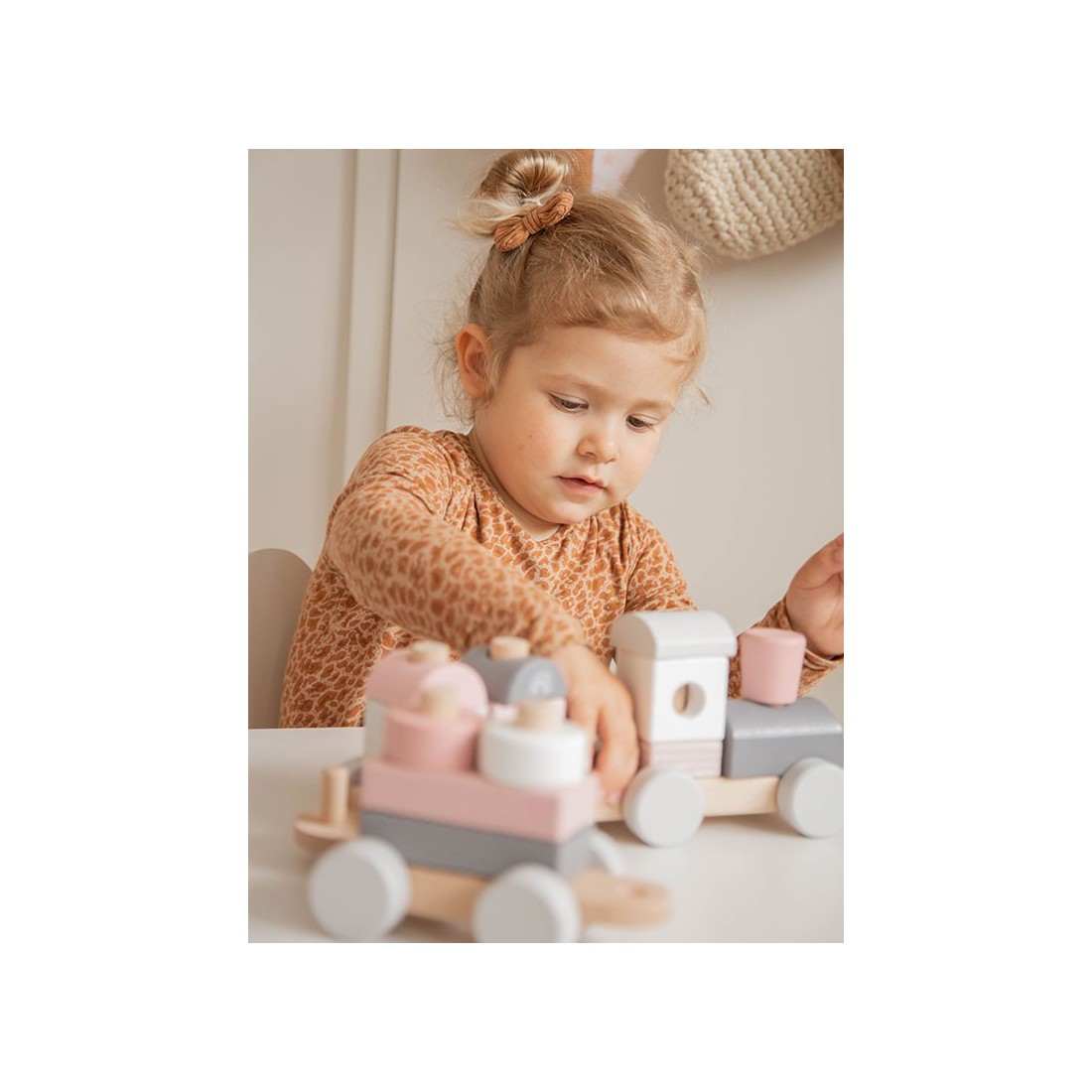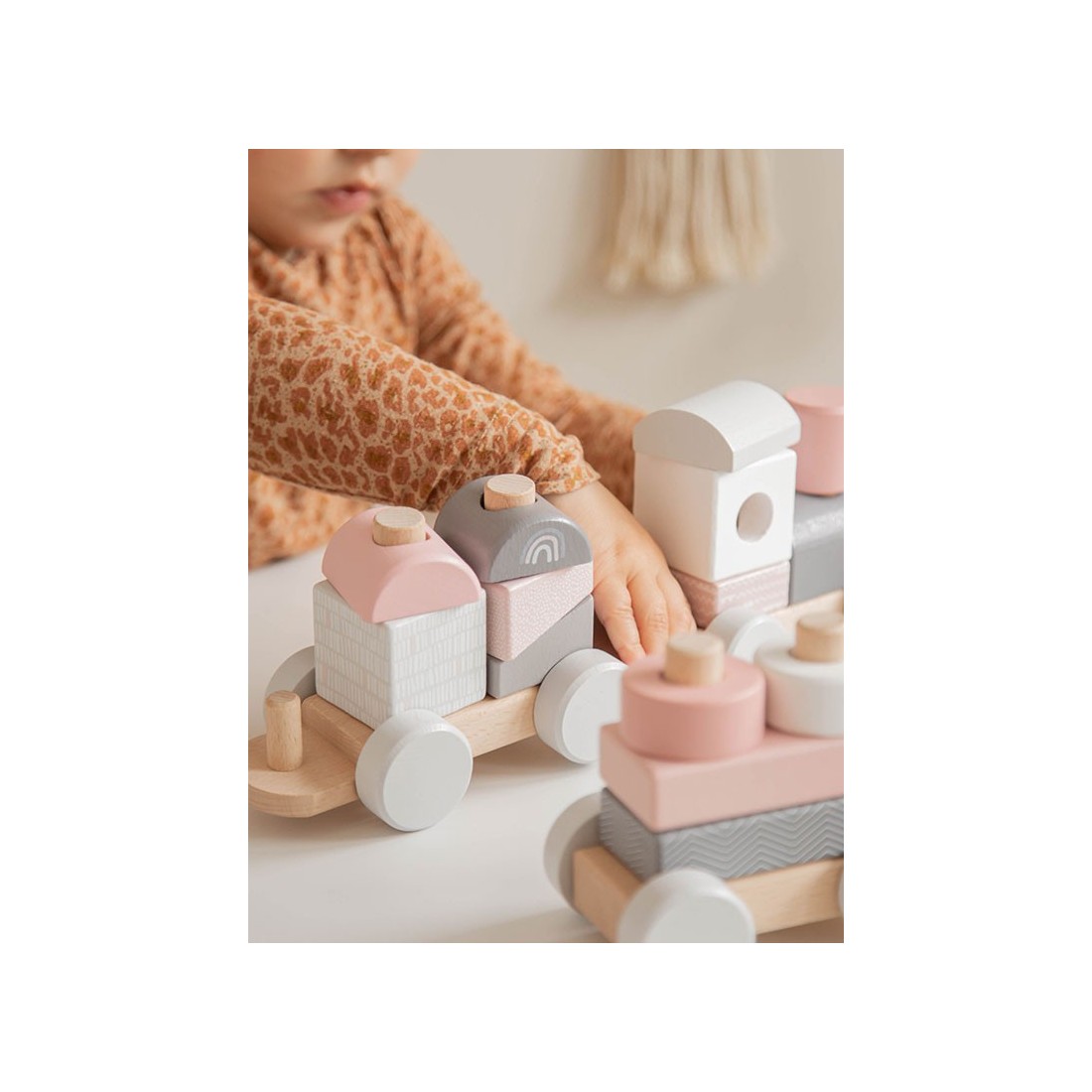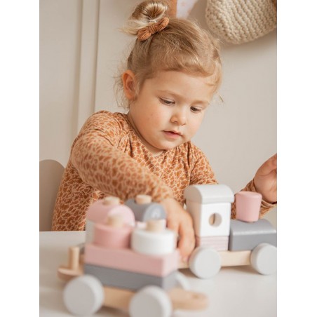 Train à blocs en bois rose - Label Label