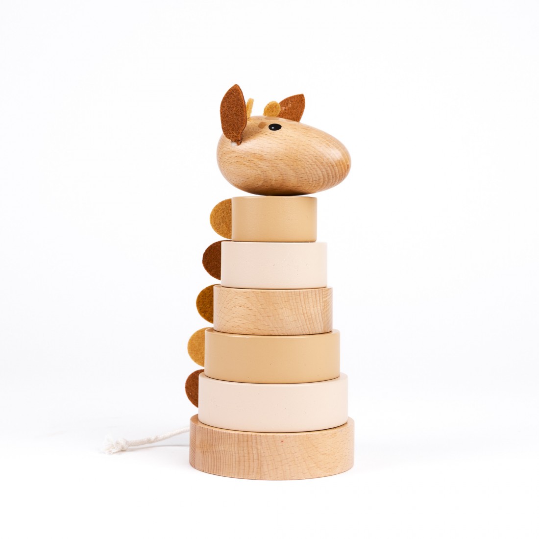 Découvrez la charmante pyramide en bois Léonie la Girafe de la marque rétro Egmont Toys. Un jouet décoratif et évolutif, idéal pour accompagner bébé dès ses premiers mois puis l’aider à développer sa motricité fine lorsqu’il grandit.