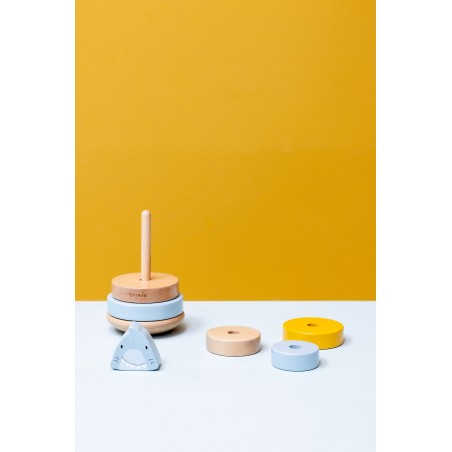 Découvrez la Tour à empiler en bois de la marque Trixie Baby, un cadeau unique et original qui surprendra les heureux parents du nouveau-né.