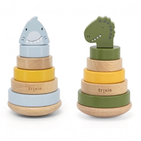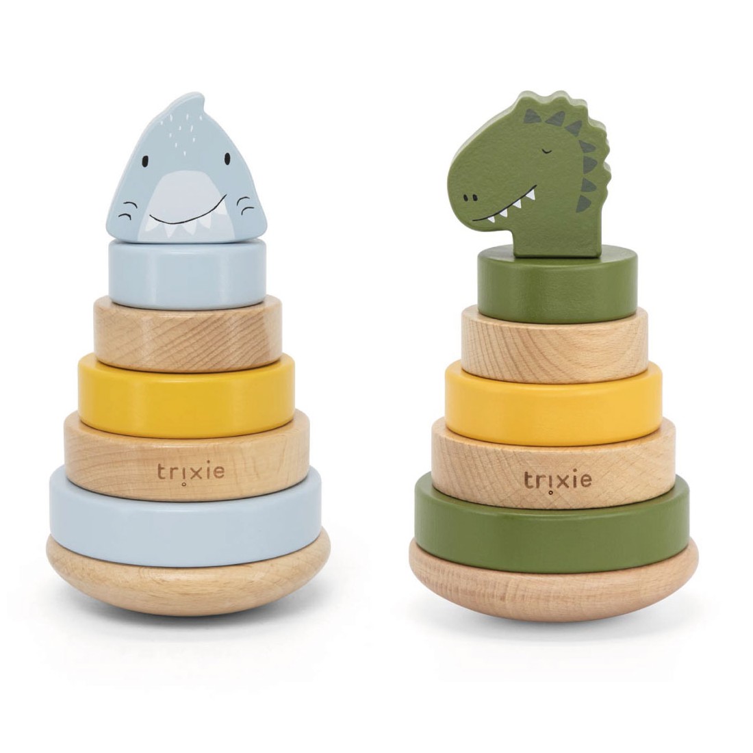 Les tours à empiler Trixie Baby sont disponibles en différents univers animaux, mais cette sélection spéciale Jurassique réunit deux modèles adorés des enfants. Avec leurs teintes douces, leur design minimaliste et leur excellente prise en main, elles sont parfaitement adaptées aux petites mains des jumeaux.