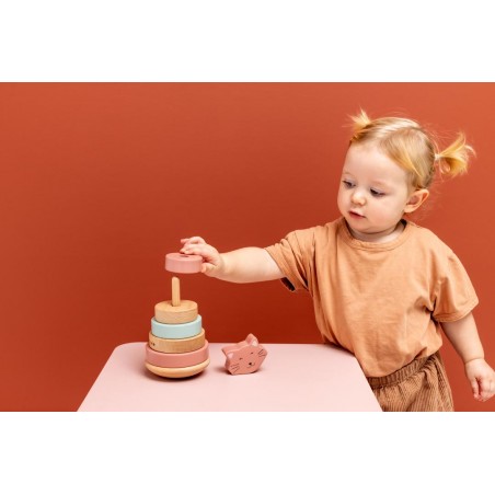 Vers 6 mois ou pour leur premier anniversaire, le duo Ferme devient un excellent support d’apprentissage. Chaque jumelle pourra manipuler sa tour, empiler les cinq anneaux en bois de hêtre sur le socle bombé, puis poser fièrement la tête de sa petite souris mauve ou de son chaton rose. Une activité parfaite pour encourager l’exploration tout en respectant le rythme de chacune.