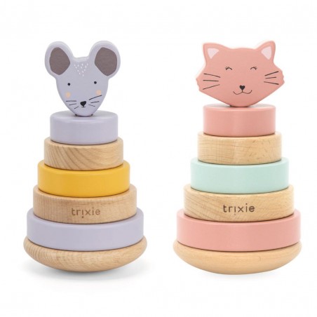 Découvrez le duo Ferme, un adorable coffret composé de deux tours à empiler en bois de la marque Trixie Baby, pensé tout spécialement pour célébrer l’arrivée de jumelles. Il réunit une tour Souris mauve, douce et malicieuse, et une tour Chat rose, délicate et élégante. Un duo charmant qui séduira autant les parents que les deux petites princesses.