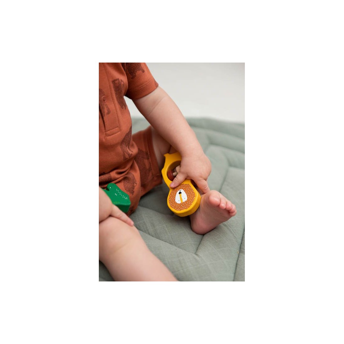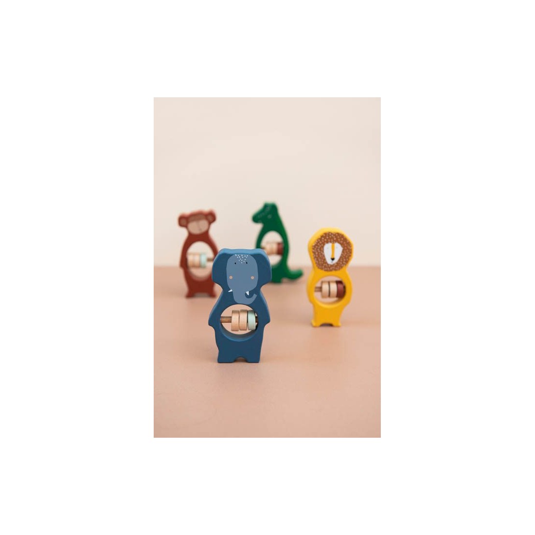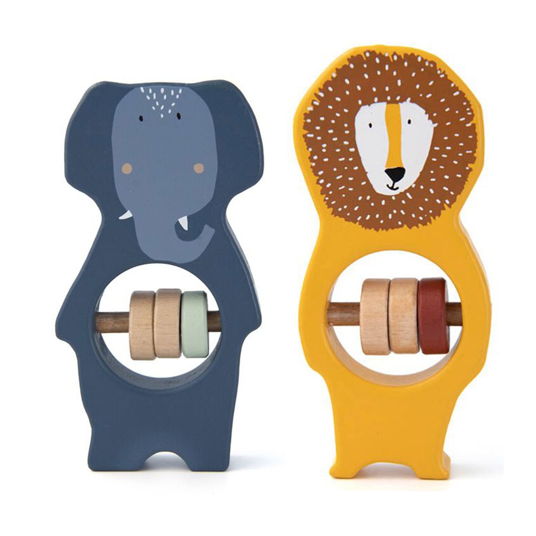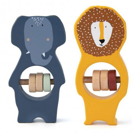 Découvrez l'univers des petits animaux Trixie avec le duo de hochets en bois Savane. Composé d’un hochet lion et d’un hochet éléphant, ce set accompagne bébé dans ses premières découvertes sensorielles. Chacun est doté de trois perles en bois au centre, offrant une expérience tactile et sonore captivante pour les petites mains exploratrices.