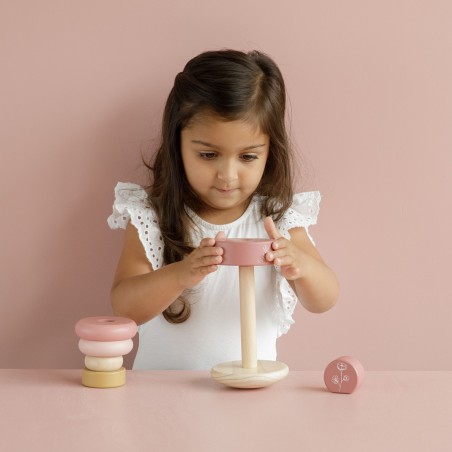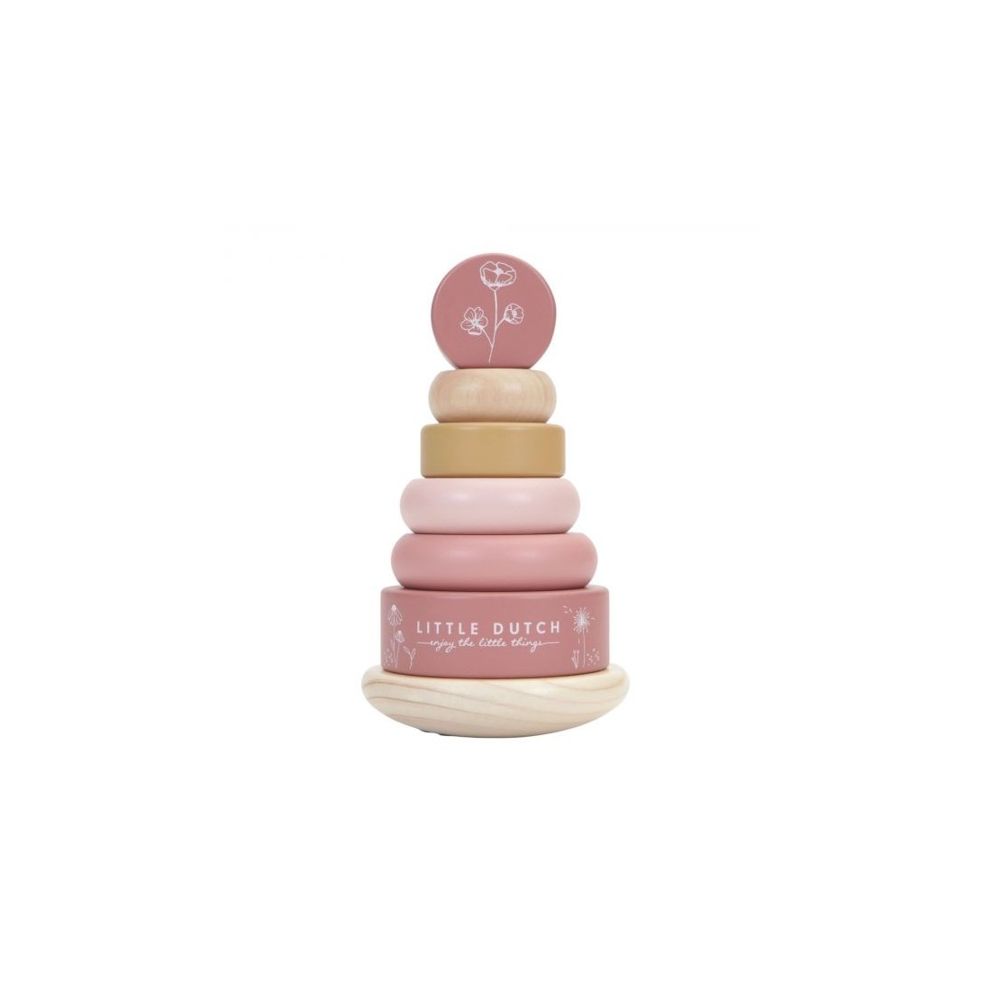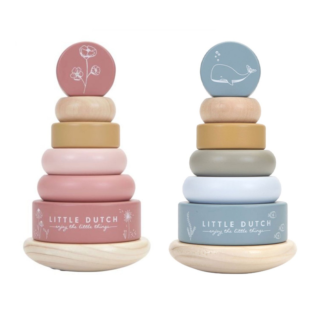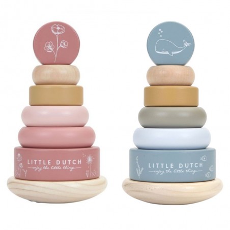 Découvrez le Pack duo Tours d’anneaux à empiler en bois de la marque Little Dutch, composé d’une tour rose Fleur et d’une tour bleu Océan.