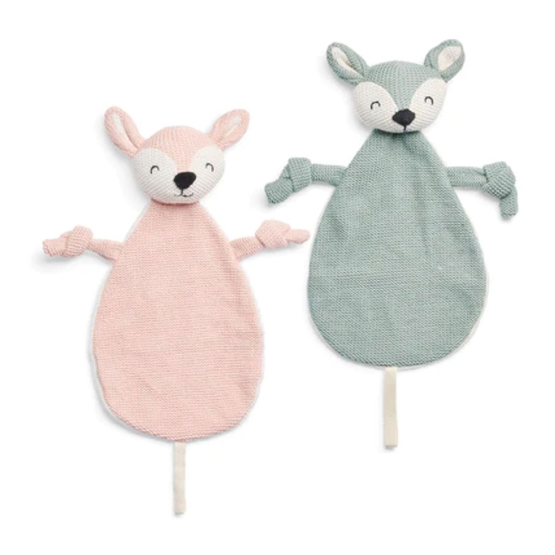 Le pack duo de doudous attache sucette biche en tricot de Jollein est l'option idéale pour les jumeaux ou pour offrir une touche de douceur et de praticité avec deux couleurs assorties : un doudou rose pâle et un doudou vert cendre. Ces doudous sont conçus pour apaiser bébé tout en empêchant la perte de la sucette, tout en apportant confort et sécurité. Un choix parfait pour les moments de réconfort de bébé !