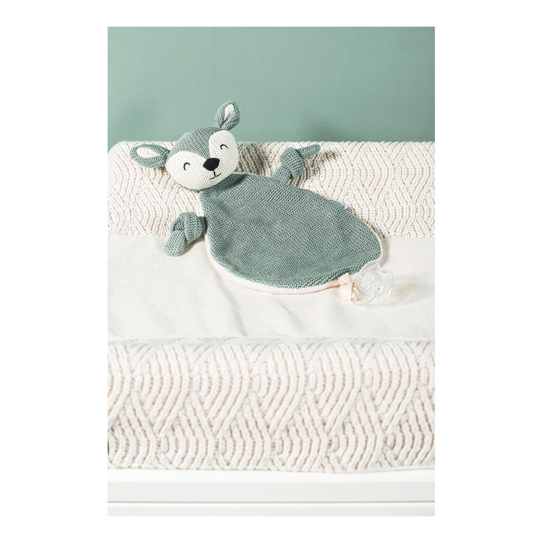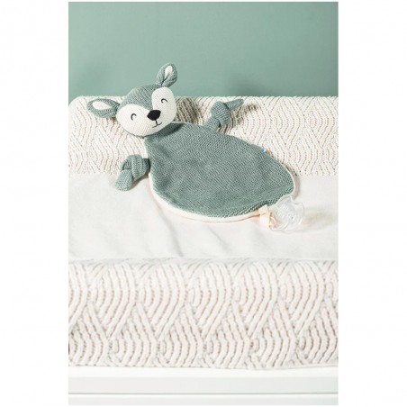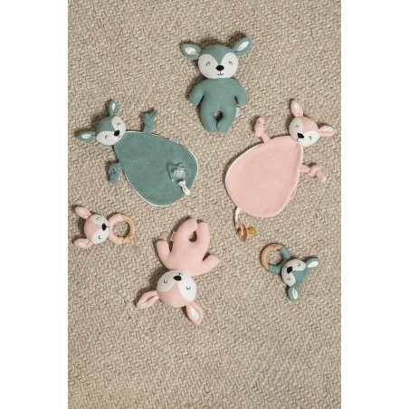 Pack duo doudou attache sucette biche en tricot - Jollein (rose pâle et vert cendre)