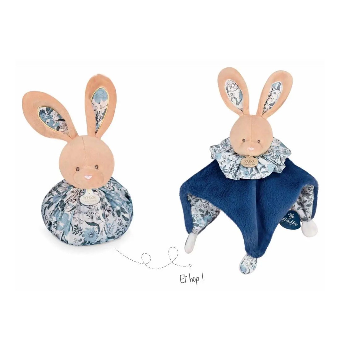 Doudou Lapin bleu - Cocon - Balle d'éveil - 3 EN 1 - 25 cm - Doudou et Compagnie