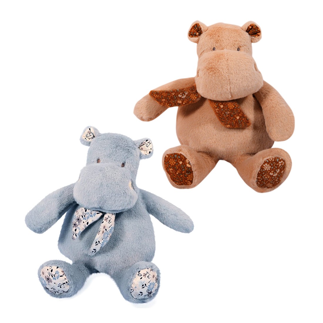 Pack Jumeaux 2 Peluches hippopotame bleu et terracotta bandana 22 cm – Histoire d’Ours
