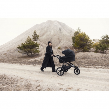 La nacelle Thule offre un espace spacieux et confortable pour votre bébé grâce à son matelas aéré et sa base ventilée, garantissant des promenades agréables même sur les terrains les plus accidentés.