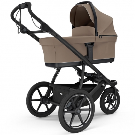 La nacelle Thule offre un espace spacieux et confortable pour votre bébé grâce à son matelas aéré et sa base ventilée, garantissant des promenades agréables même sur les terrains les plus accidentés.