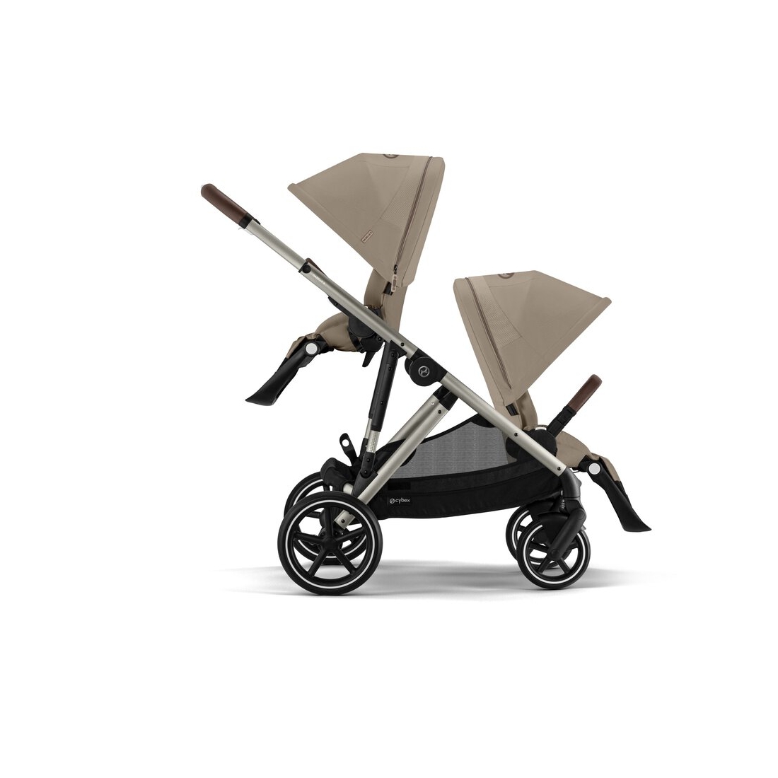 La Gazelle S peut accueillir jusqu'à 3 enfants : il est possible de la transformer en poussette double avec l'ajout d'une seconde assise (en option) et d'un installer une planche à roulettes (en option) pour votre aîné. Elle est homologuée pour supporter jusqu'à 22 kg par siège, 13 kg dans le panier shopping et 10 kg dans le panier de rangement.