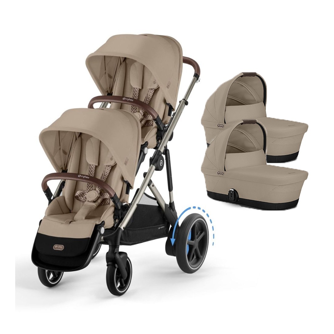 Pack Jumeaux poussette e-Gazelle S 2025 + 2 Nacelles Almond Beige Cybex