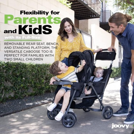 La poussette Caboose Too de Joovy est le choix parfait pour les parents recherchant une poussette double compacte, évolutive et sécuritaire, sans compromis sur le confort.
