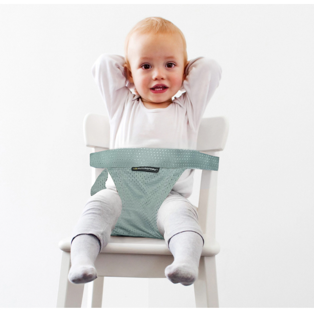 Le Minichair de Minimonkey est un siège nomade pratique qui vous permet de transformer n'importe quelle chaise en siège bébé, en moins d'une minute.