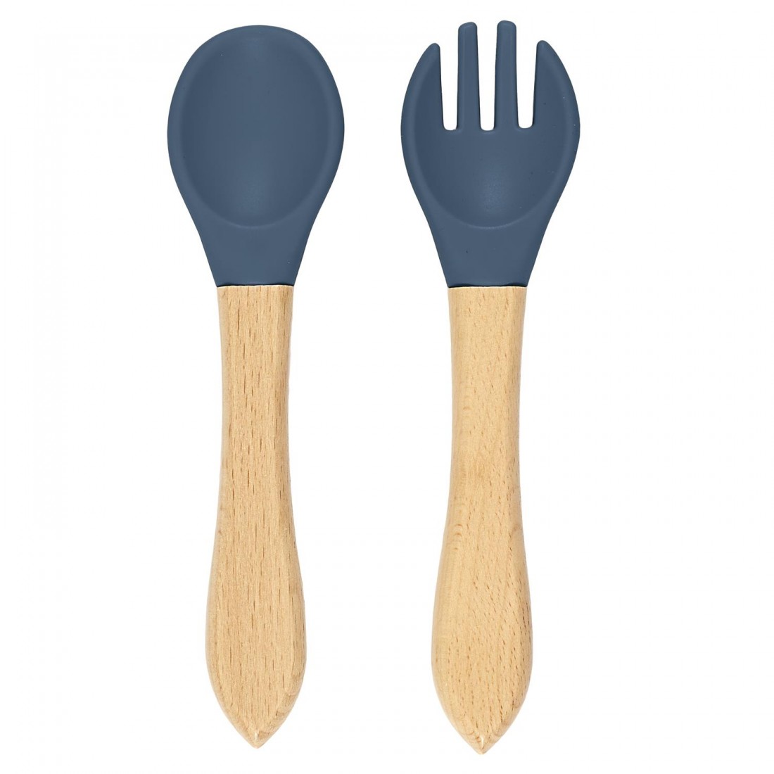 Pack duo set de 2 couverts bébé bambou et silicone (Gris & Bleu Nuit)
