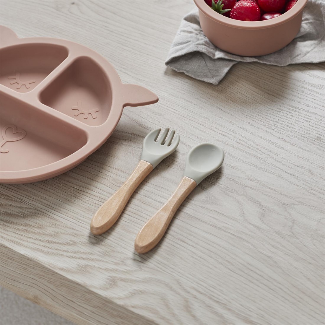 Conçus spécialement pour les petites mains, ces couverts allient sécurité, ergonomie et design naturel, parfaits pour accompagner vos enfants dans leurs premiers repas en autonomie.