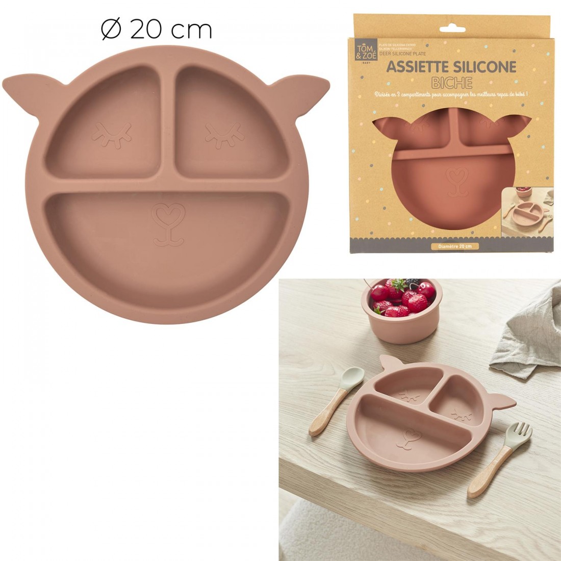 Pack jumeaux : 2 assiettes en silicone Biche & Girafe à trois compartiments