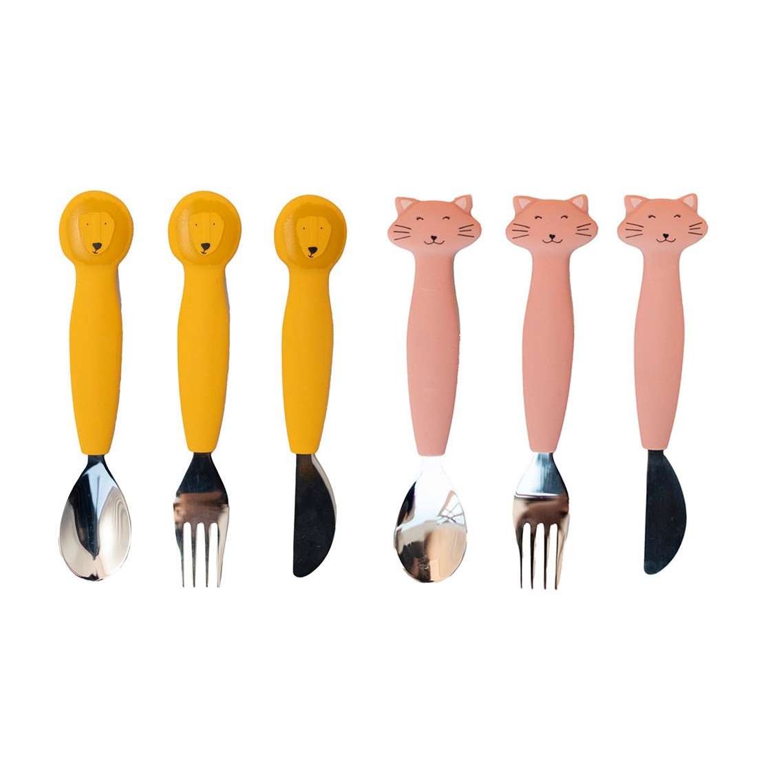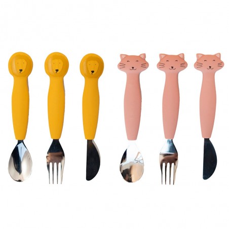 Offrez à vos jumeaux une expérience de repas amusante, stimulante et parfaitement adaptée à leur développement grâce aux sets de couverts en silicone et métal Trixie. Chaque enfant peut profiter de son propre animal, avec un set Chat pour l’un et un set Lion pour l’autre, afin que chacun ait un univers unique et facilement reconnaissable.