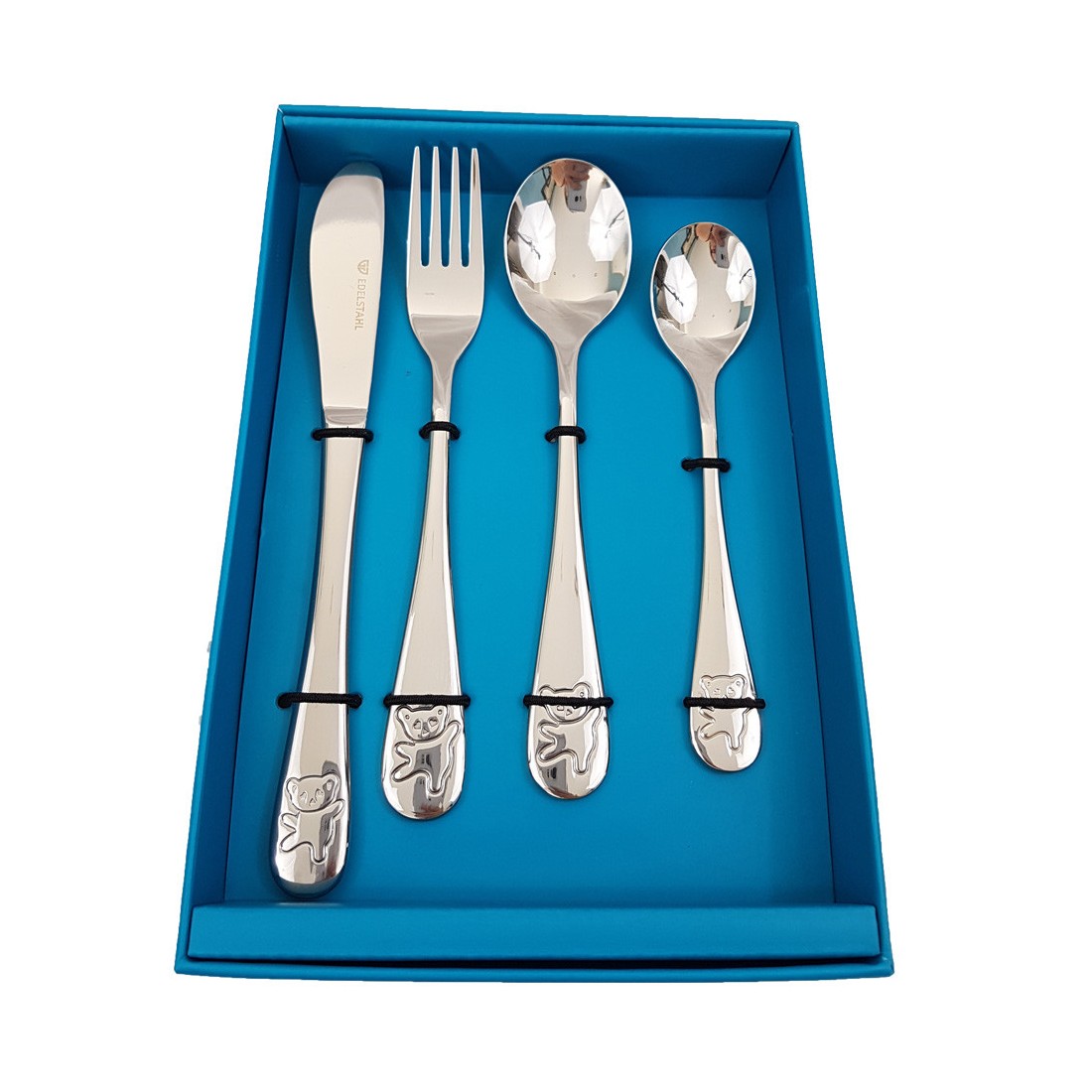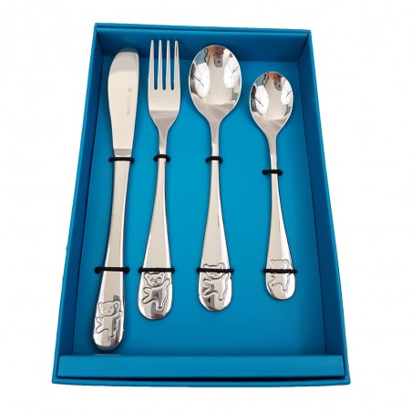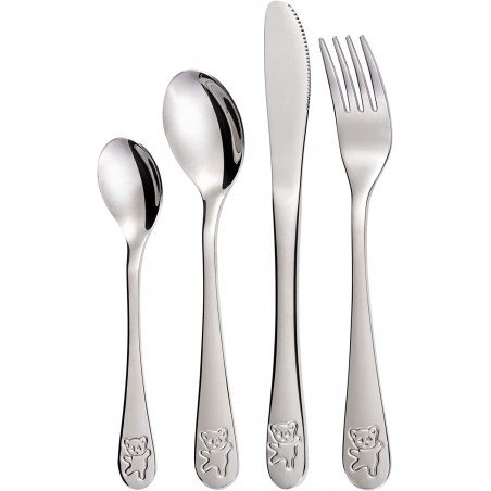 Avec ces 4 ustensiles, vos bons petits plats maison n’auront plus la même saveur : petites purées de légumes, compotes ou délicieux gâteaux seront engloutis en quelques minutes. Entièrement faits d’acier inoxydable, ces couverts résisteront aux nombreux repas de vos bambins et trouveront facilement leur place dans votre lave-vaisselle pour un nettoyage rapide et pratique. De micro-rayures peuvent être présentes sur les couverts, dues au transport, mais elles n’altèrent en rien leur utilisation. Ils disposent d’un mignon petit motif en forme d’ourson sur le bas du manche.