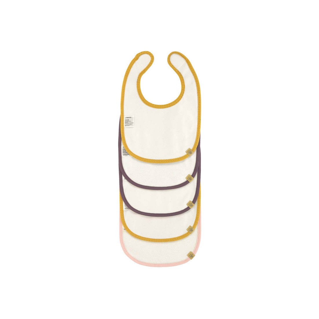 Les bavoirs répondent aux exigences de la norme Oeko-Tex 100, classe 1 et sont lavables à 40 °C.