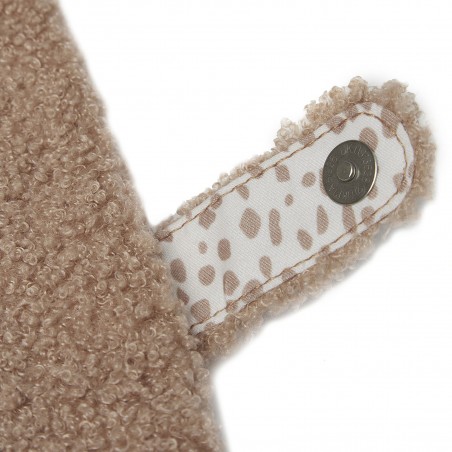 Cette protection aux bouclettes douces mesure 24 × 19 × 2 cm, s’adaptant parfaitement aux carnets de santé distribués en France. D’une douceur inégalable et d'une couleur tendance, elle dispose d’un rabat intérieur et d’un clip sur le côté pour sécuriser vos documents.