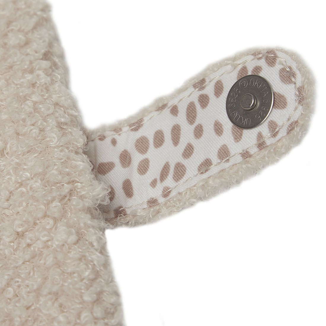 Design : bouclé très doux à l’extérieur, rabat à l’intérieur pour sécuriser les documents