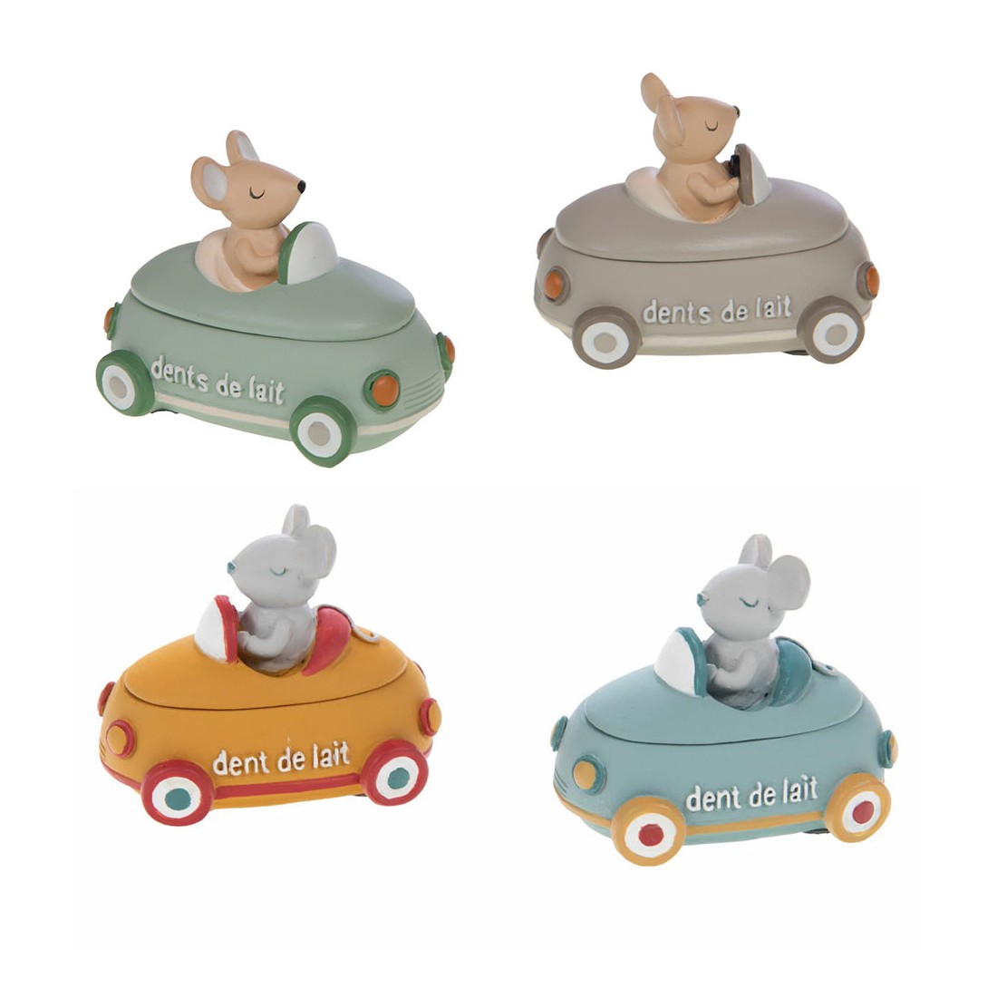 • Décoration : Figurine d’une petite souris dans sa voiture sur le couvercle