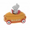 Décoration : Deux figurines de petites souris, chacune dans sa voiture assortie, apportant une touche ludique et charmante