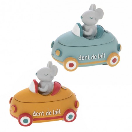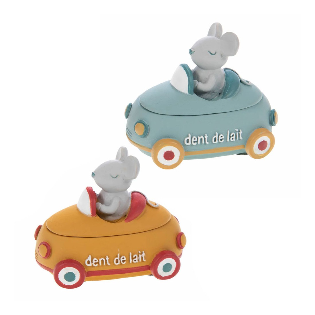 Pack Jumeaux 2 boîtes à dents de lait voiture - Moutarde et Bleu - Amadeus