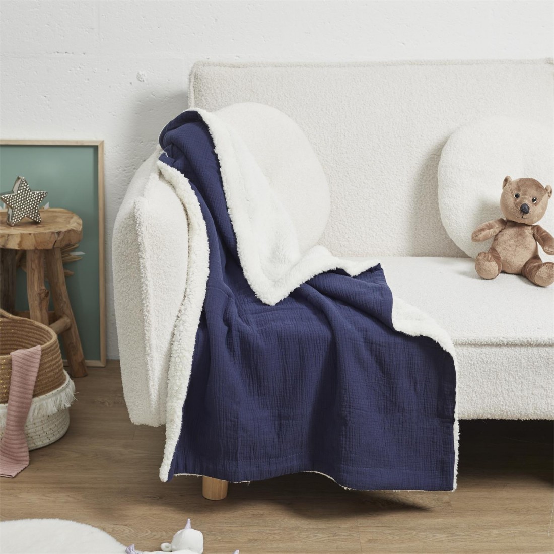Couverture chaude bébé sherpa et gaze de coton 100x70cm