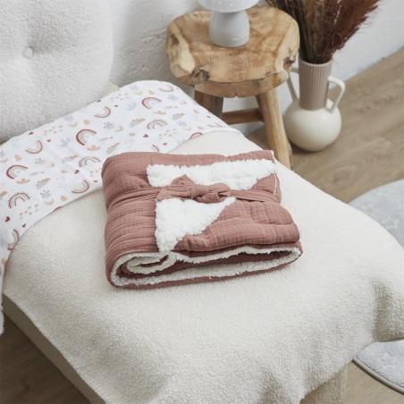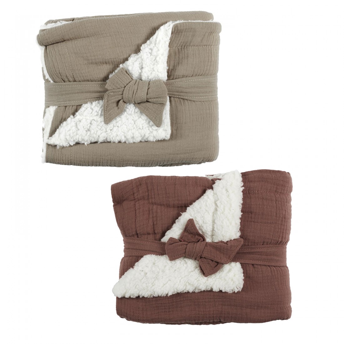 Pack duo de couverture chaude bébé sherpa et gaze de coton 100x70cm - Terra