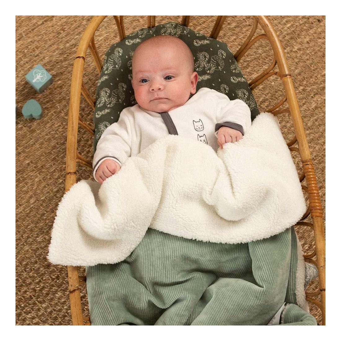 Avec son mélange de matières moelleuses et respirantes, elle devient l’accessoire indispensable pour les siestes, les sorties en poussette ou les moments cocooning à la maison. Disponible en blanc, rose ou vert sauge, elle s’adapte à tous les univers et séduit par son look élégant et intemporel.