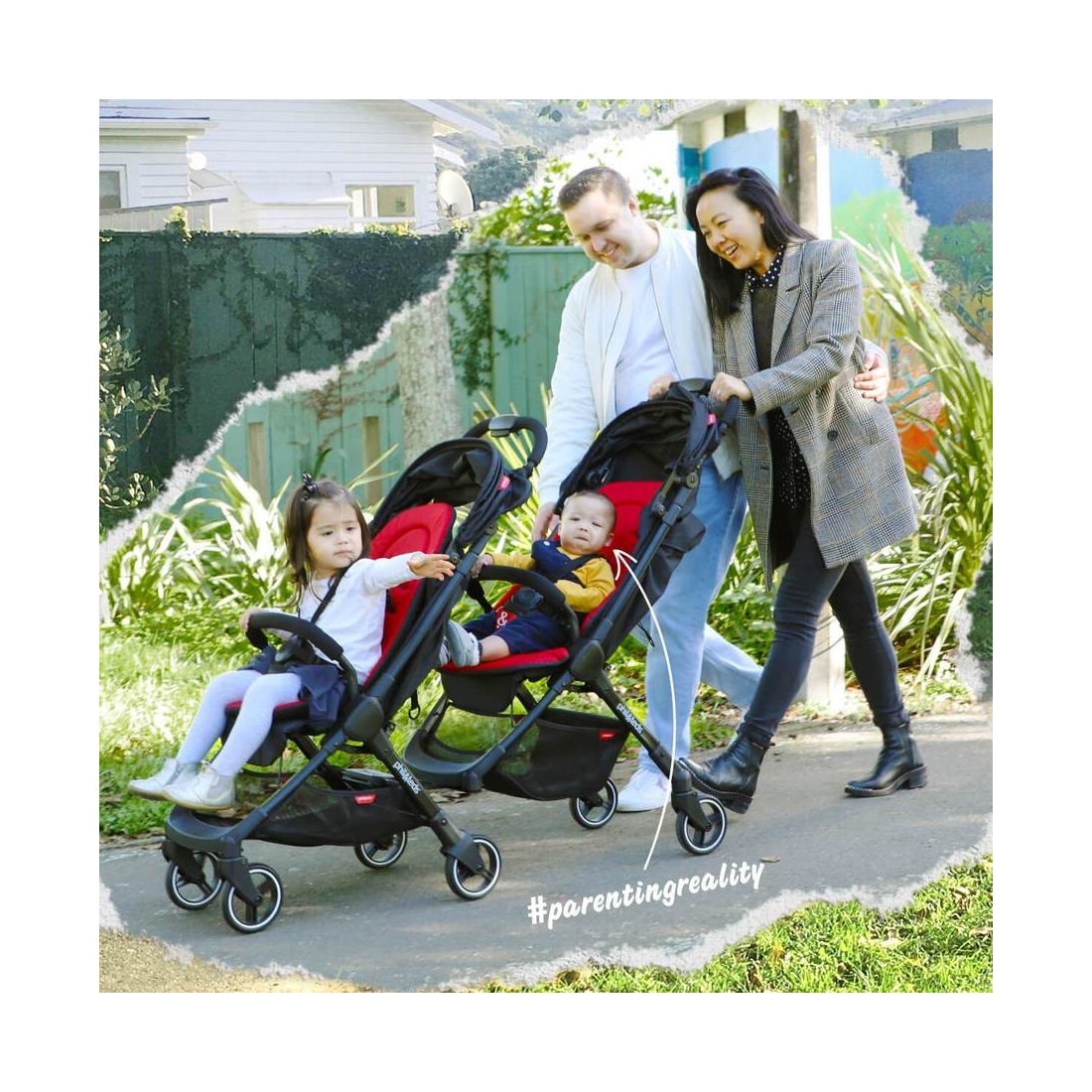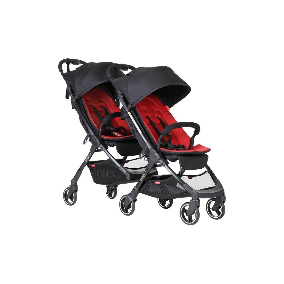- soit une double poussette en ligne parfaitement assortie, simple à fixer, très confortable et peu encombrante